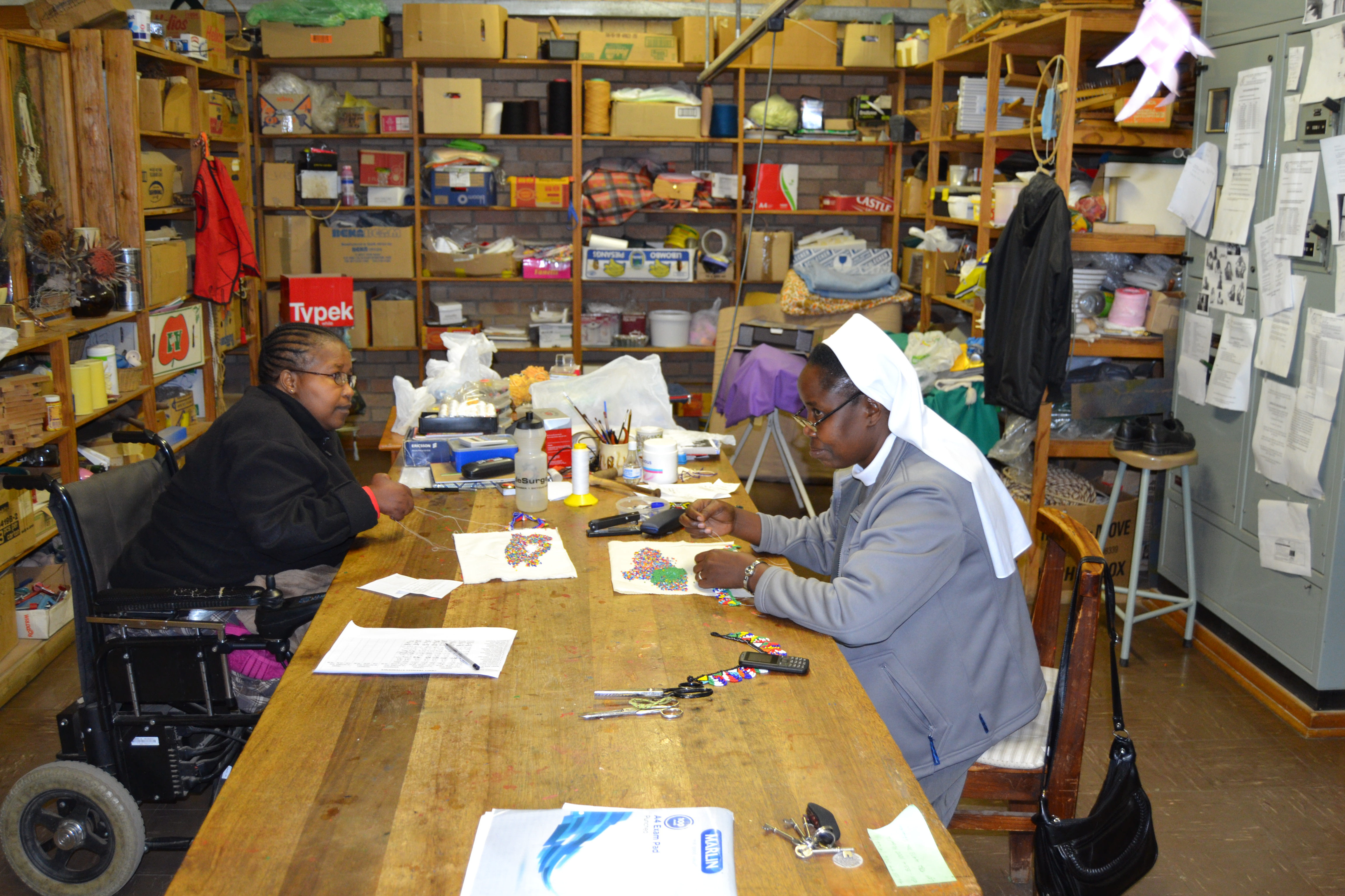 In this workshop there are about 20 people with a physical and/or intellectual disability. The Craft workshop offers formal and informal training. The young people stay for up to five years. They learn the techniques of beadwork, silk-screening, painting, drawing, weaving and other handcrafts.